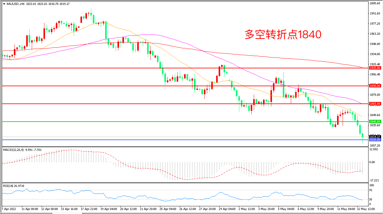 交易策略:在1840.00之下看跌,目标1815.00 1790.00