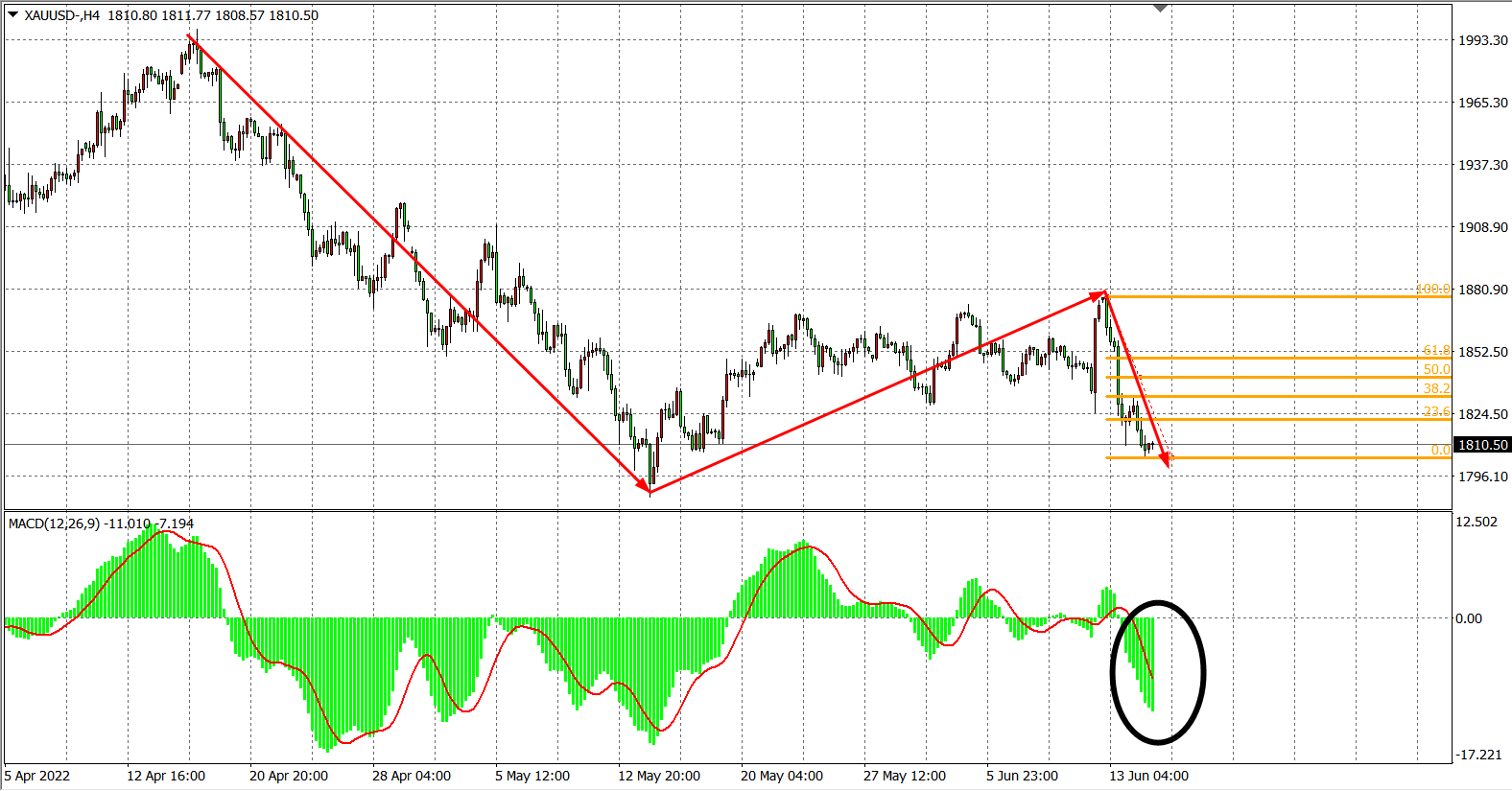 交易策略:在1820.00之下看跌,目标1800.00 1780.00