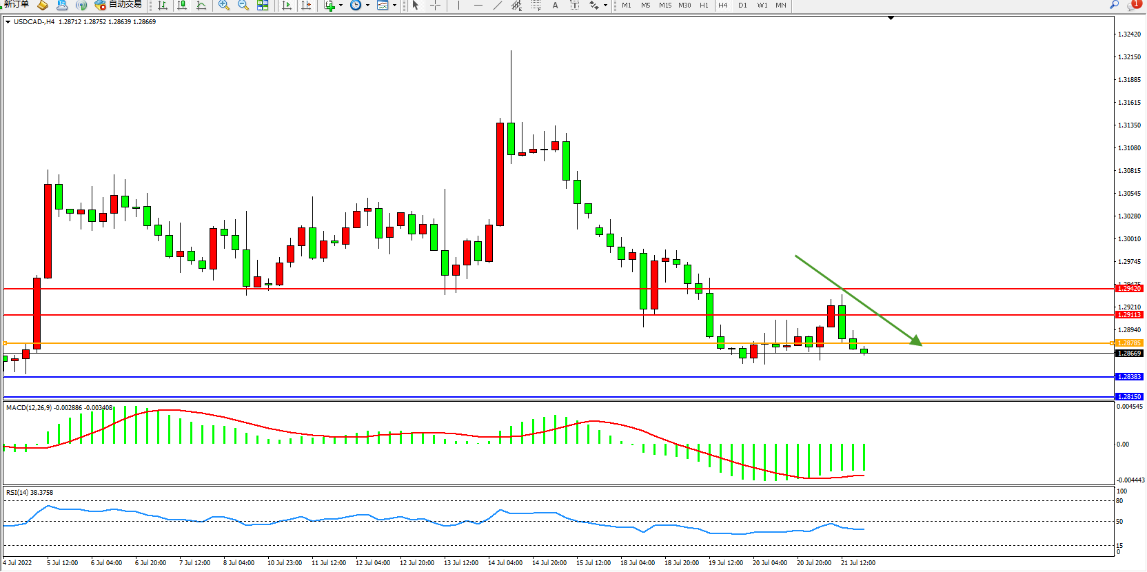 美元兑加元维持1.28669附近震荡,加拿大6月新屋价格指数年率 7.9%,前值8.4%。