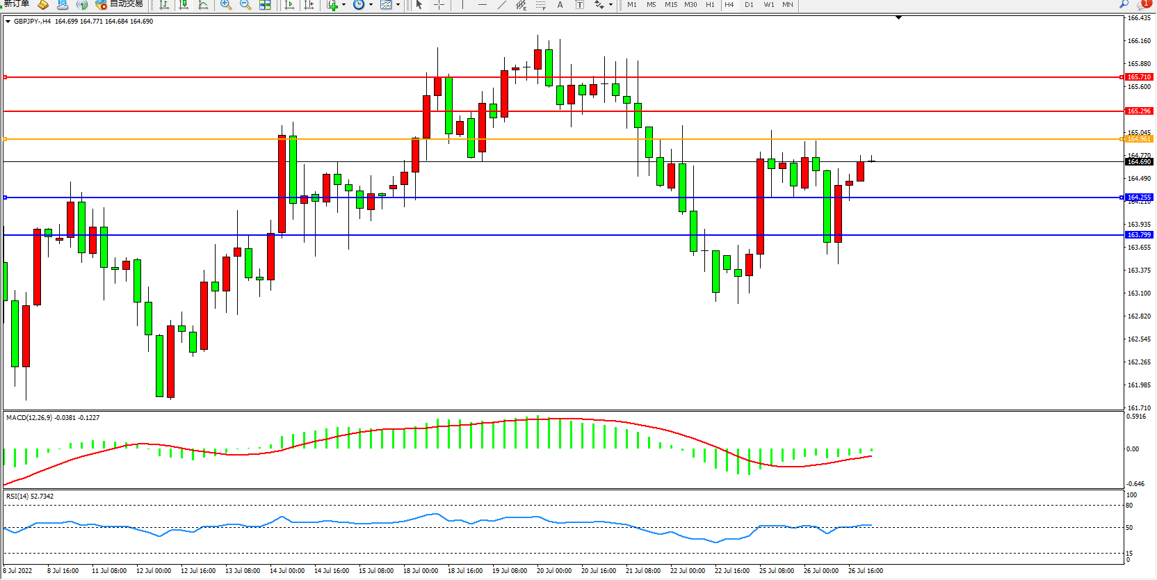 4小时图看:短期低位宽幅震荡走势,多头有伺机入场态势,MACD指标处于空头区域低位弱势缓慢上移,RSI指标处于50均衡线附近徘徊;