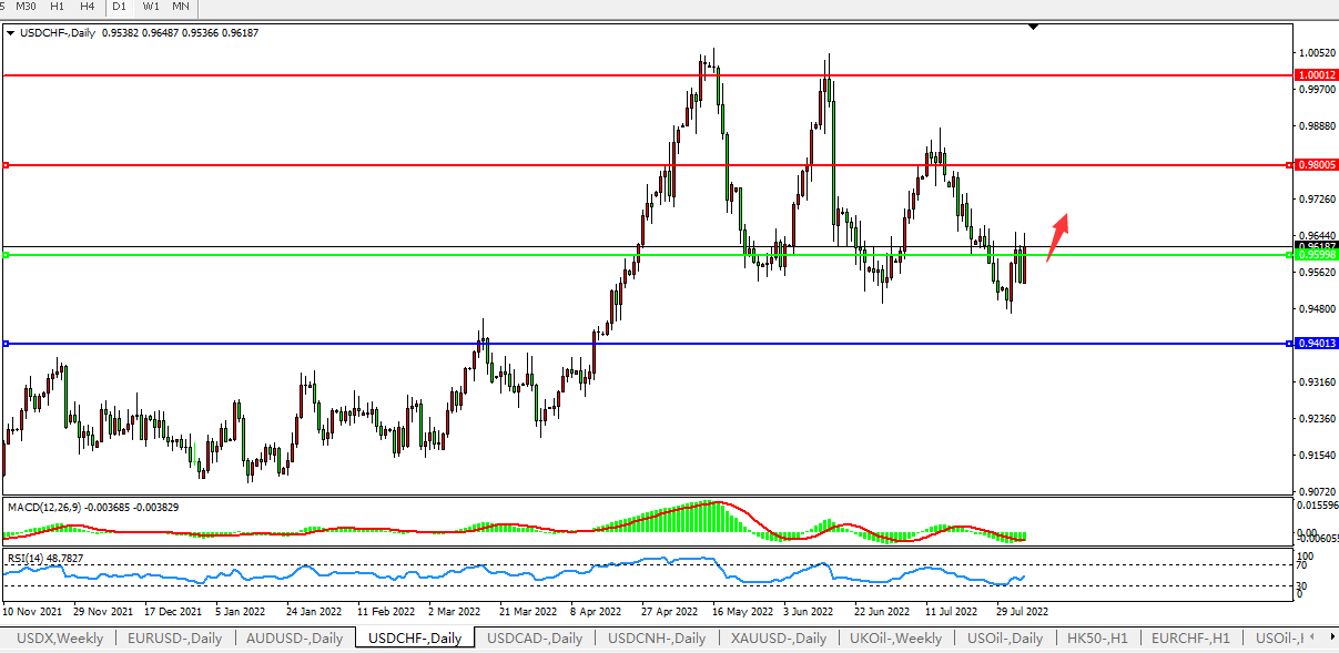 交易策略:0.9600上方看涨,目标0.9800,1.0000