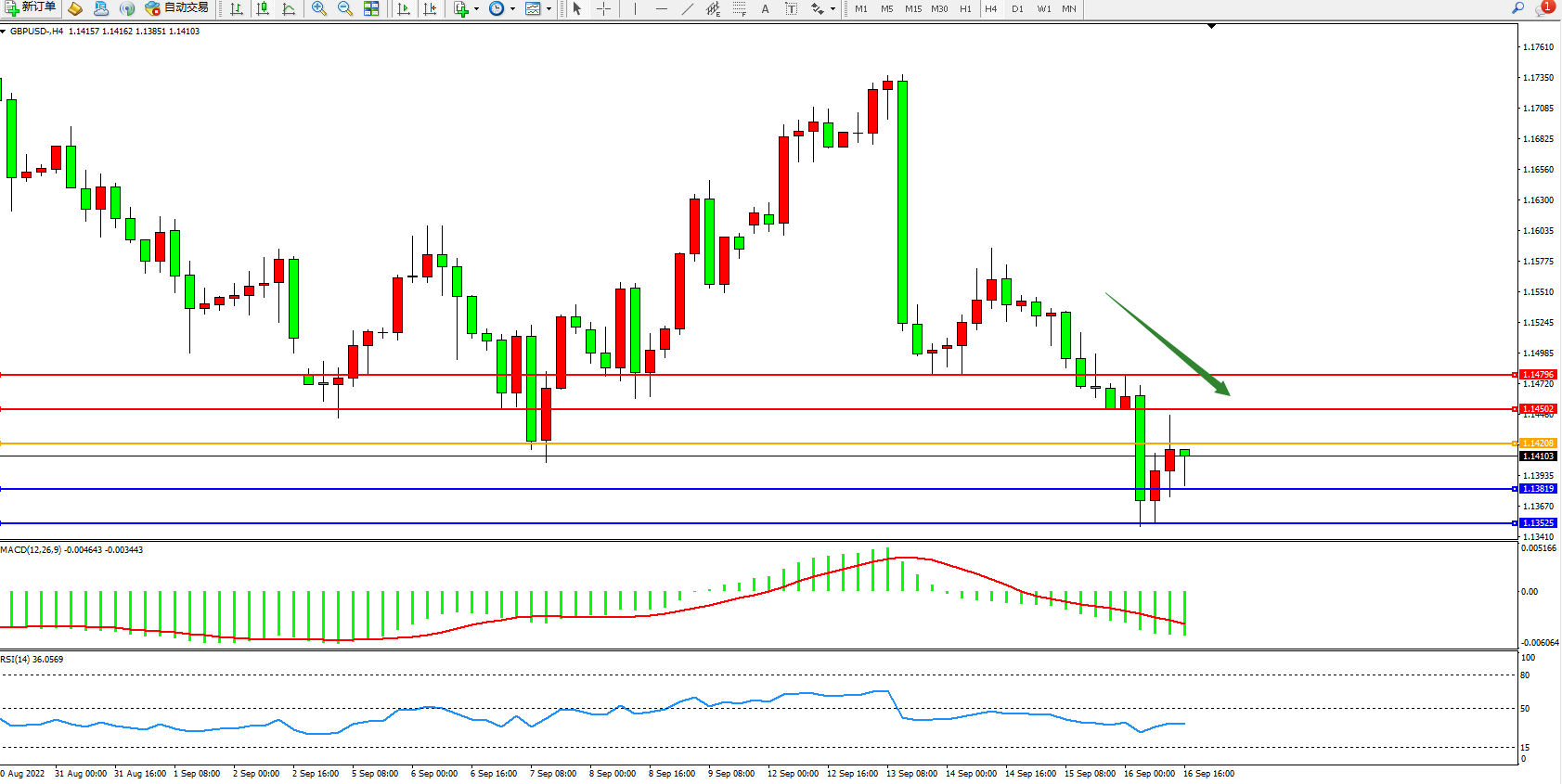 备选策略:1.14208上方看涨,目标1.14502、1.14796