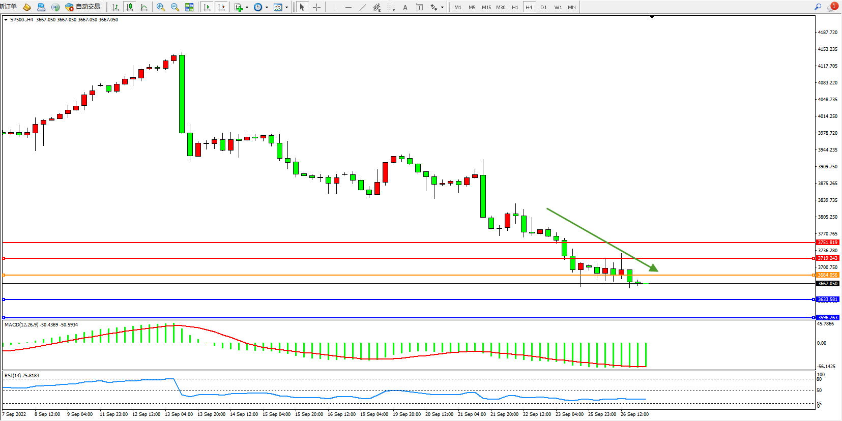 标普维持500指数9月26日(周一)收盘下跌35.54点,跌幅0.96%,报3657.69点;笼罩全球市场的阴霾核心是包括美联储在内的全球主要央行上周大幅提高利率,导致经济增长前景堪忧。由于美国经济前景相对乐观,美元较其他货币优势也不断强化。