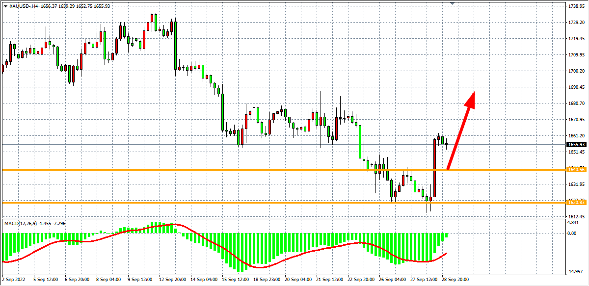 备选策略:在1640.00之下看跌,目标1620.00            1600.00