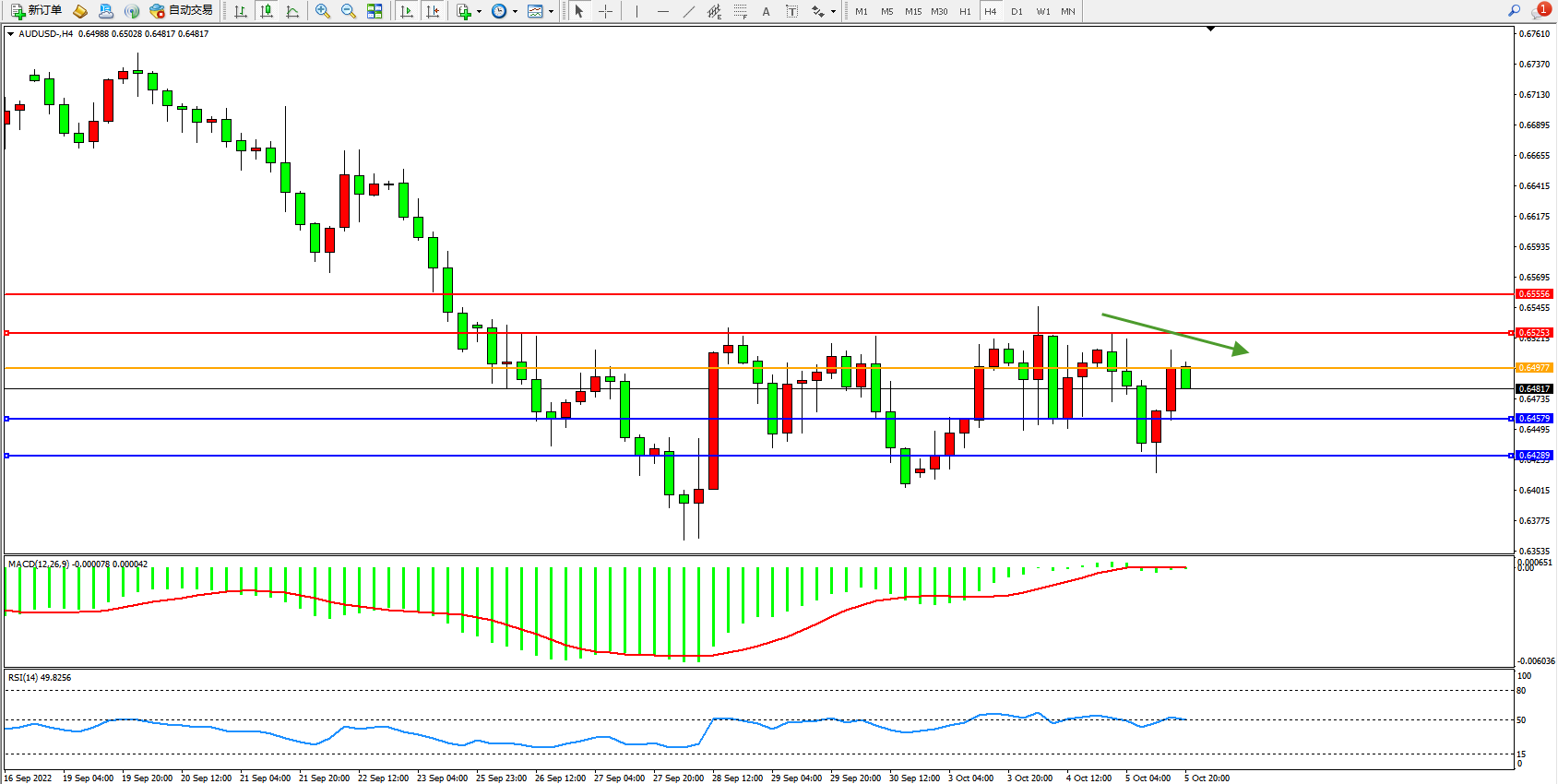 备选策略:0.64977上方看涨,目标0.65253、0.65556