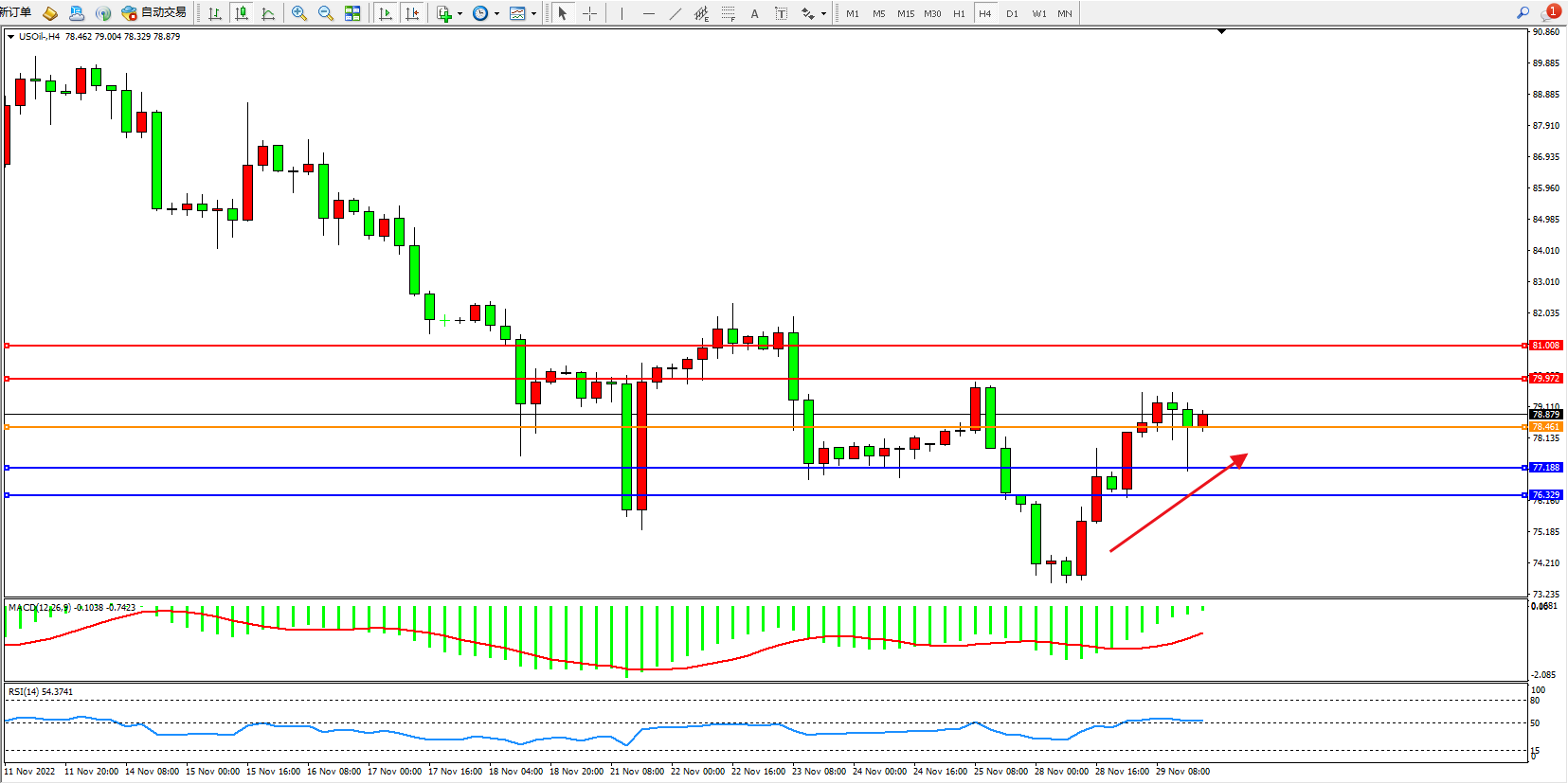 原油维持78.879附近震荡,预计OPEC+今年的减产不会对市场产生重大影响,尽管这是一个不确定因素。另一个可能推动价格上涨的因素是,乌克兰战争是否会升级。