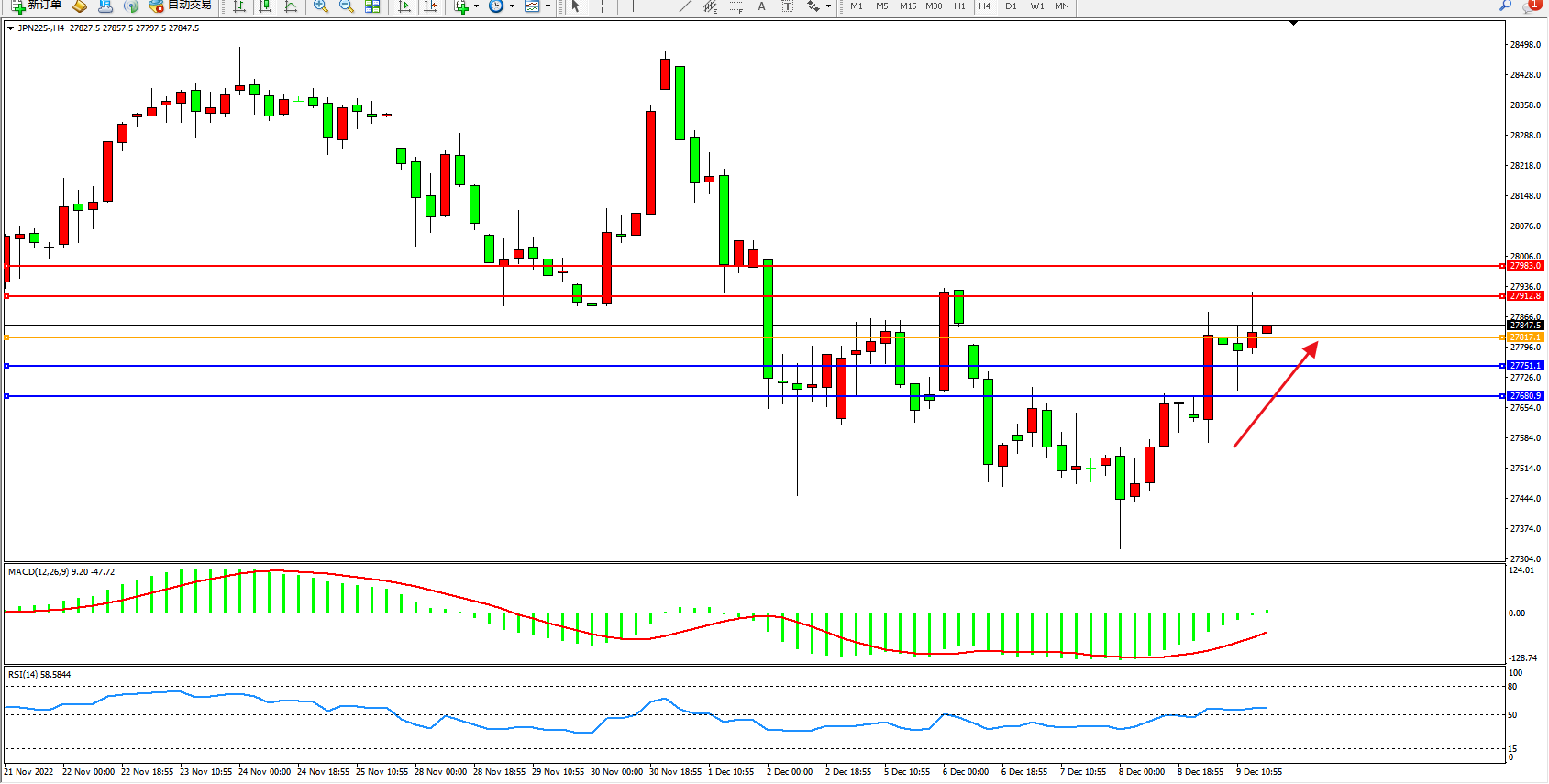 日经225指数12月9日(周五)收盘上涨334.07点,涨幅1.21%,报27908.50点。日本11月货币供应M2年率 3.1%,预期3.00%,前值3.10%。
