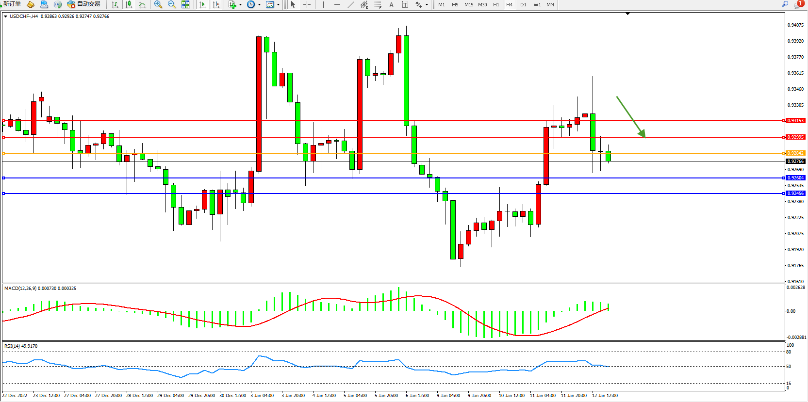 交易策略:0.92842下方看跌,目标0.92604、0.92456