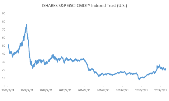 对于大基金经理来说,2023年的宏观环境比2022年要好,很多2022年的阻碍因素今年都不复存在,大宗商品的在今年肯定是大类资产配置的关注重点。其中GSCI高盛商品指数,是很好的观察窗口,虽然周五原油期货暴跌,但是这个指数在美盘早间时段崩了一下之后全天走平,和原油走势迥异。