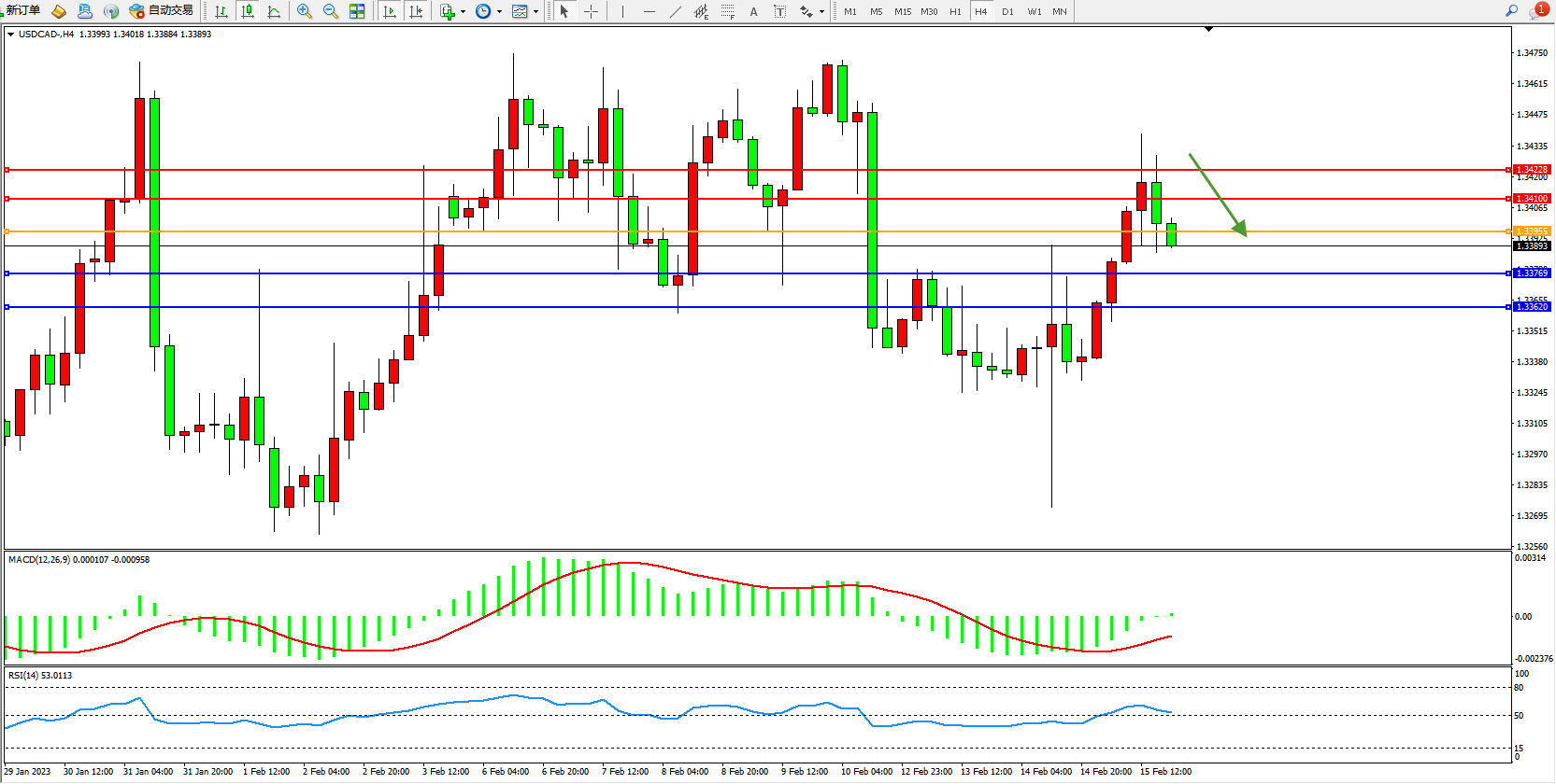 美元兑加元维持1.33893附近震荡,加拿大12月批发销售月率 -0.8%,预期-1.80%,前值0.50%,为2021年7月以来新低。