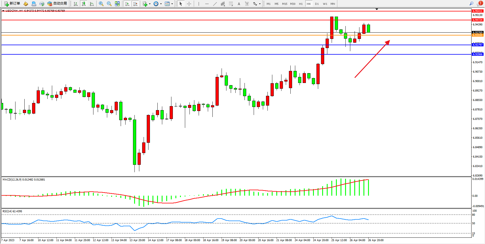备选策略:6.93550上方看涨,目标6.94724  6.95411
