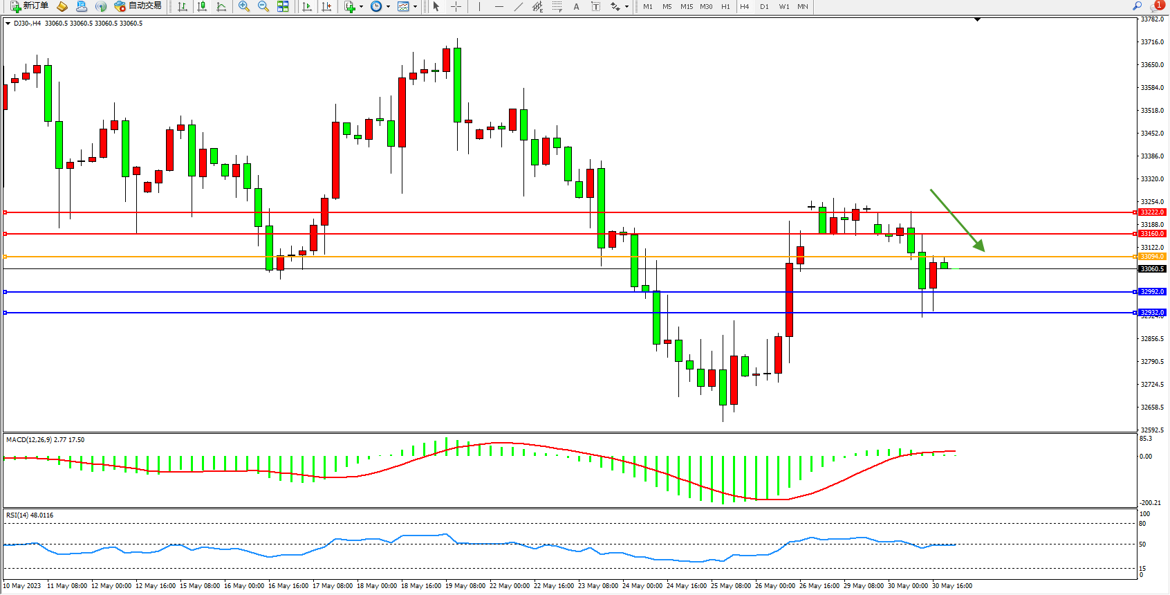 道琼斯指数5月30日(周二)收盘下跌50.49点,跌幅0.15%,报33042.85点;市场对美国债务上限协议在国会可能受阻感到忧虑,美联储鹰派不惧“过犹不及”的理念也可能为下一次危机预埋伏笔。