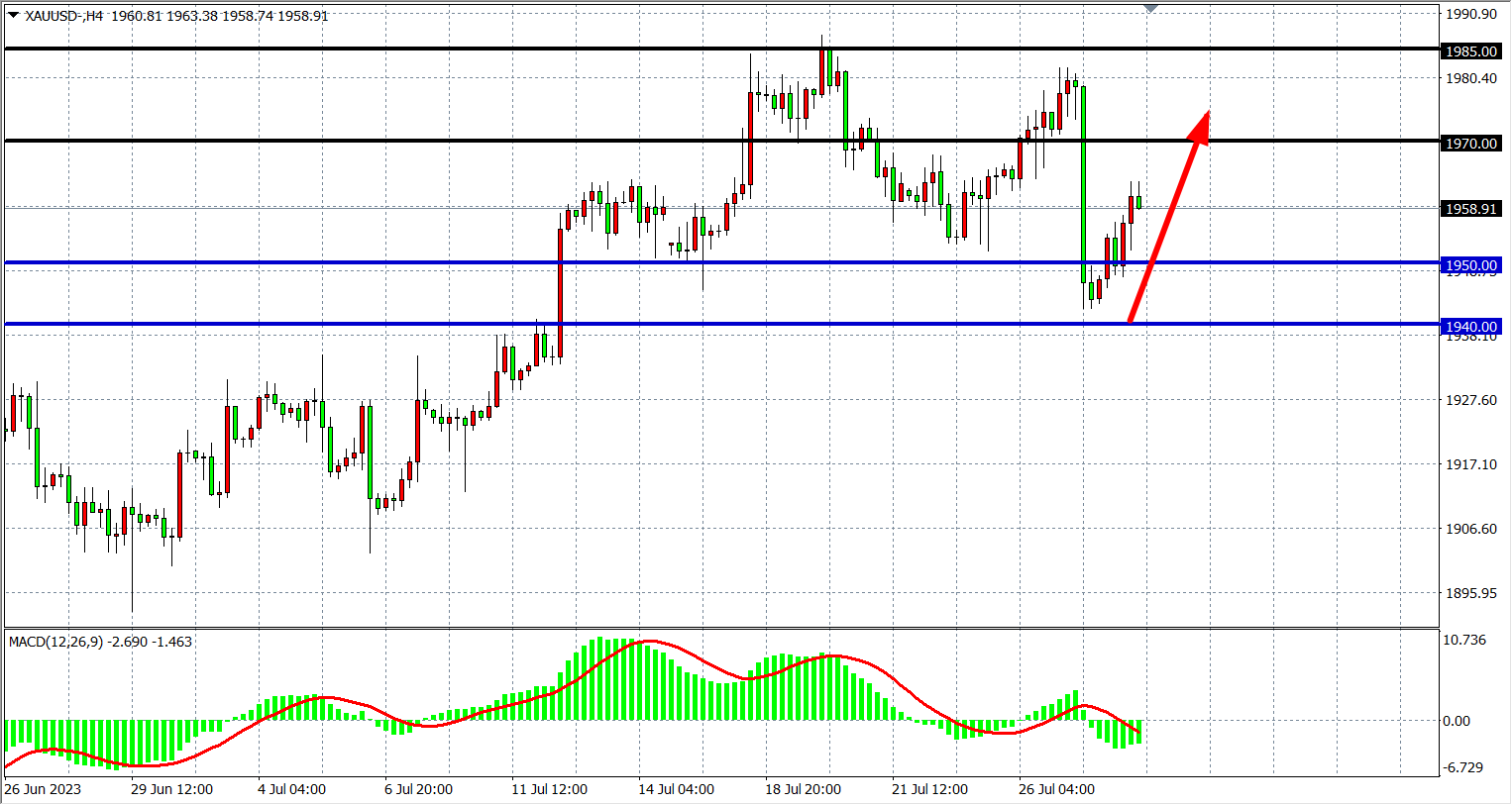 周五(7月28日)日本央行周五意外放松对债券收益率的控制,被认为是变相的加息,同时公布的美联储密切关注的一项指标显示,6月份通胀进一步显示出降温迹象。受此影响,美指未能延续此前的强劲升势,微跌0.04%,现货黄金回升至1960美元上方,但本周仍小幅下跌。