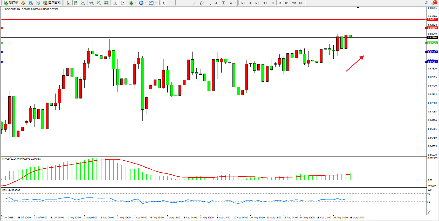 交易策略:0.87926上方看涨,目标0.88109 0.88212