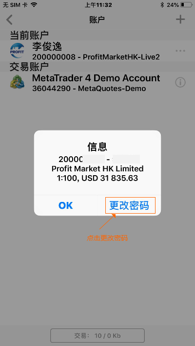 MT4移动端如何修改密码