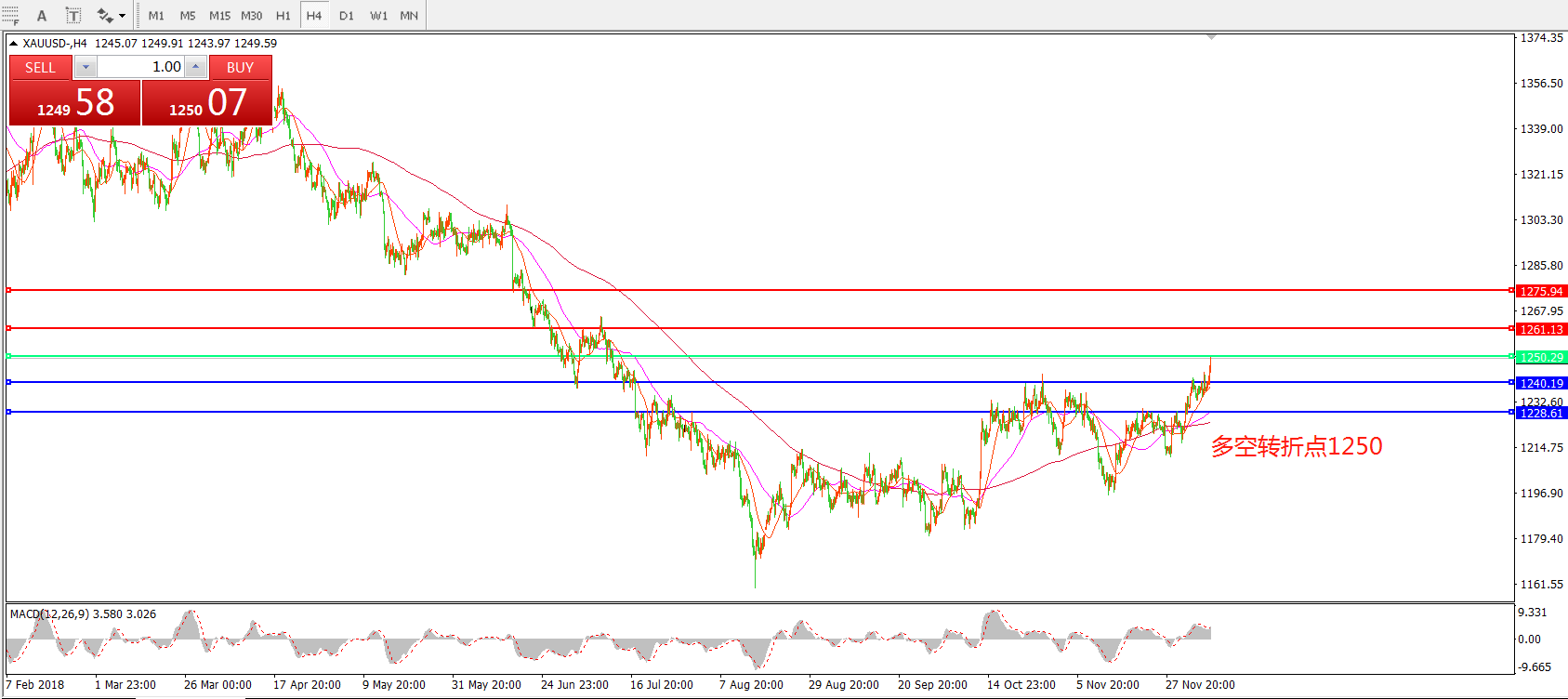 交易策略:在1250之上看涨,目标1260.00  1275.00.